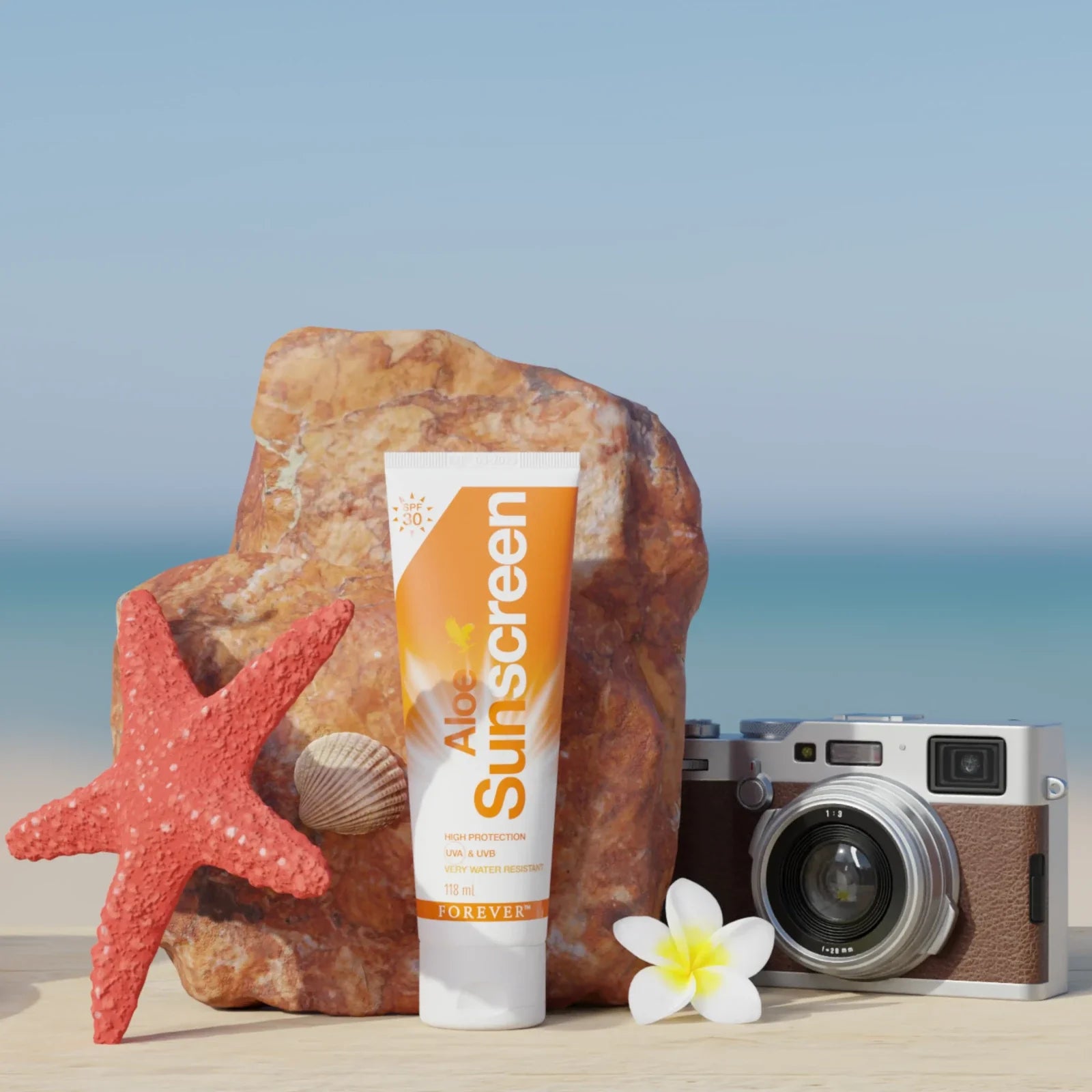 احمِ بشرتك من أشعة الشمس الضارة مع ألوي صن سكرين من فوريفر، الواقي المثالي الذي يجمع بين الوقاية والترطيب بفضل تركيبته الفريدة من جل الألوة فيرا النقي وعامل الحماية SPF 30.